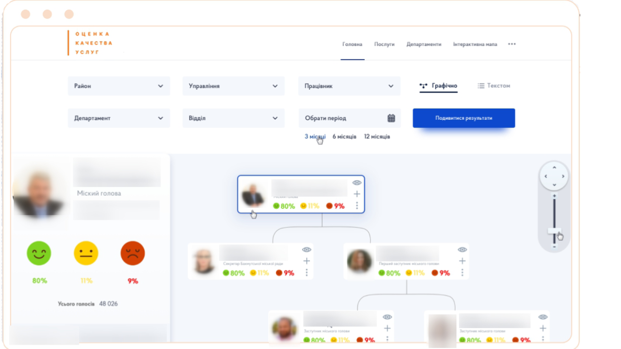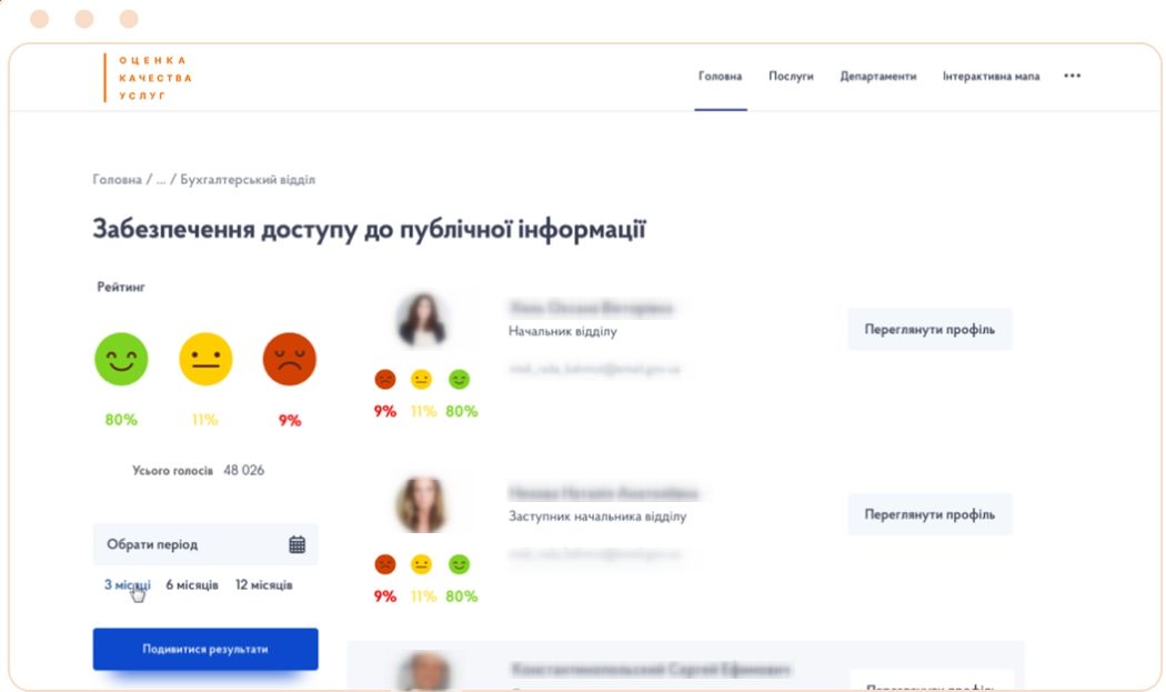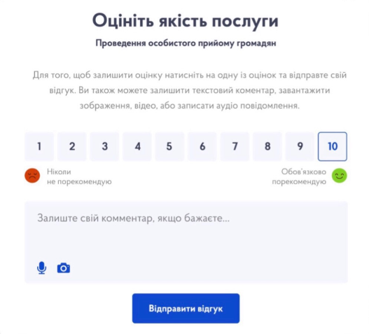 ПРОЕКТ «ПІДВИЩЕННЯ ЯКОСТІ НАДАНИХ ПОСЛУГ з безкоштовним впровадженням системи оцінки якості та управління лояльністю» направлений на підвищення якості надання послуг та підвищення лояльності громадян за рахунок вимірювання якості послуг, використання аналітичних даних для оптимізації процесів, розробки та прийняття організаційних та управлінських рішень.